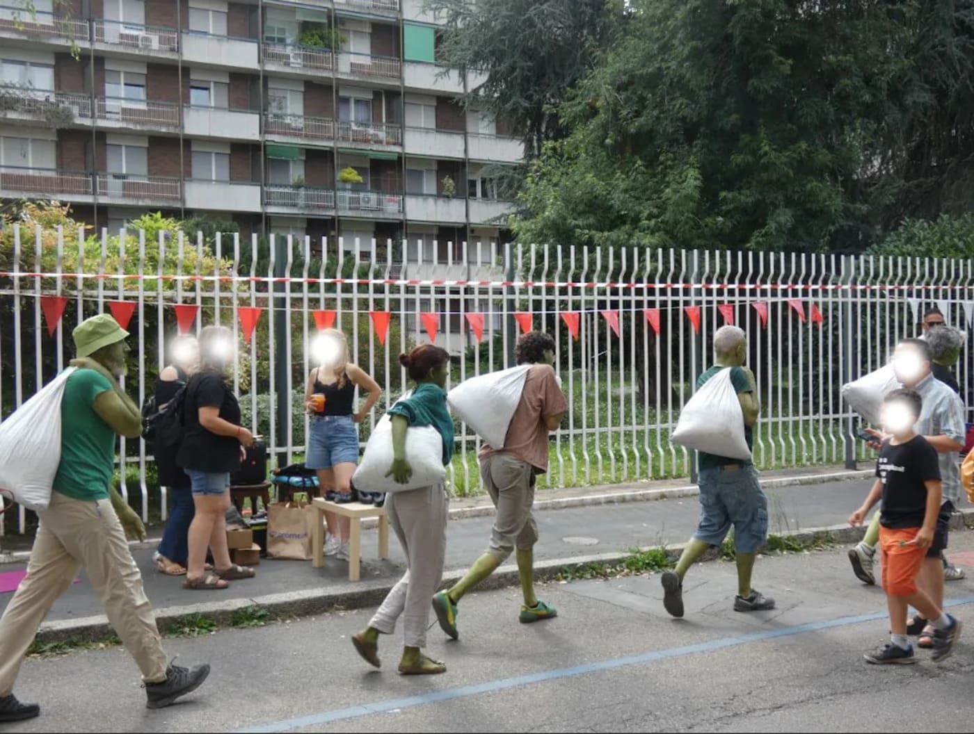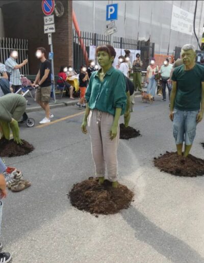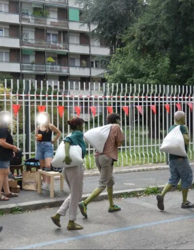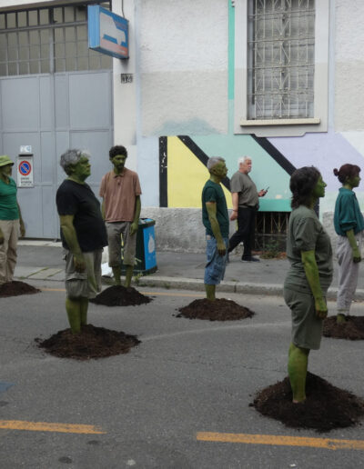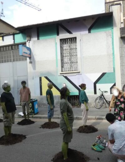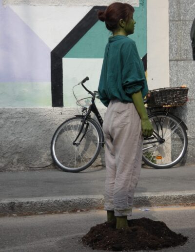 In BEWOOD performers attempt the impossible task of becoming a forest in a failed collective ritual. This anthropocentric performance explores the daily life of trees, from the struggle for roots and photosynthesis to the release of oxygen, within a human framework.